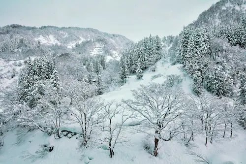 Bring the peaceful stillness of a snow-covered winter forest into your home with this serene photography art print.