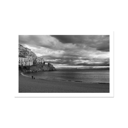 Italy, Amalfi white and black and white Photography Print, Skyline & seaside wall art